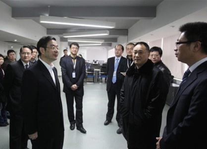 湖南省委書記周強在中南傳媒董事長龔曙光(右三)陪同下視察天聞數媒公司