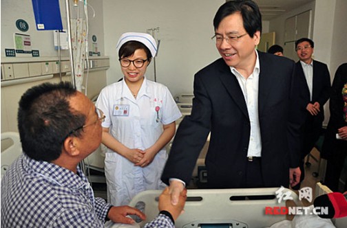 5月12日,湖南省衛生廳廳長張健和主要職能處室負責人來到中南大學湘雅醫院、湖南省腫瘤醫院等醫療單位,深入基層看望奮斗在一線工作崗位的白衣天使,并致以節日的問候。廳領導向護士代表贈送國家衛計委策劃出版的國內首部展現護理核心價值的青春勵志圖書—《天使的微笑》,作為節日禮物,寄語護理人員在身、心方面得到更好的錘煉和升華。