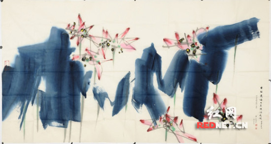 這幅16平尺的彩墨作品簡潔、大氣的用墨之中,蘊含著“月照洞庭波”的意境,體現(xiàn)了黃永玉高超的繪畫技巧。黃永玉自稱,從題材到手法都是以前沒有過的。