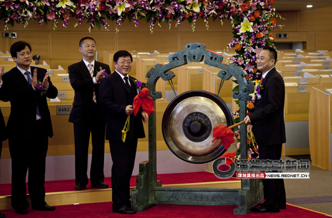 紅網(wǎng)上海10月29日訊(瀟湘晨報記者 張冬萍)在這個充滿創(chuàng)意、夢想和機遇的舞臺上,已經(jīng)很久沒有出現(xiàn)過龍頭的身影,一切靜默只為期待中南傳媒的到來。10月28日,在國家新聞出版總署副署長鄔書林等領(lǐng)導(dǎo)的見證下,湖南省委常委、宣傳部長路建平與中南傳媒董事長龔曙光一道鳴鑼開市,代碼為“601098”的中南傳媒正式登陸上海證券交易所,掛牌首日漲30%,股票市值達到248億元,一躍成為出版?zhèn)髅桨鍓K資產(chǎn)規(guī)模最大、股票市值最高的新龍頭。