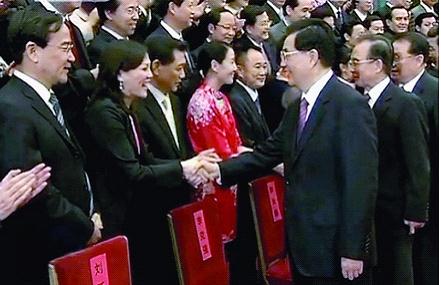 9月26日,全國文化體制改革工作表彰大會在北京人民大會堂舉行。會前,胡錦濤、溫家寶、李長春、習近平、李克強等會見全體與會代表。(央視截圖)